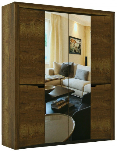 с зеркалом, назначение: для одежды, для спальни, тип установки: напольный, дверцы: распашные, материал корпуса: ЛДСП, штанга для вешалок, количество дверей: 4