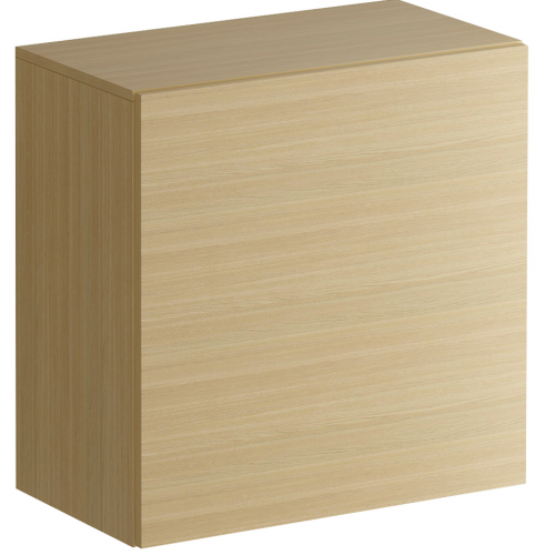 Шкаф имеет два отделения, образованные одной съемной полкой с возможностью переустановки по высоте. Распашная дверь открывается по принципу «нажал-открыл». Задняя стенка белого цвета.